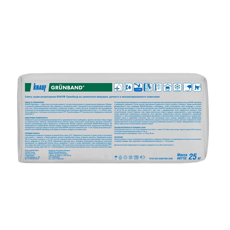 Штукатурка теплоизоляционная фасадная Knauf Grunband, 25 кг