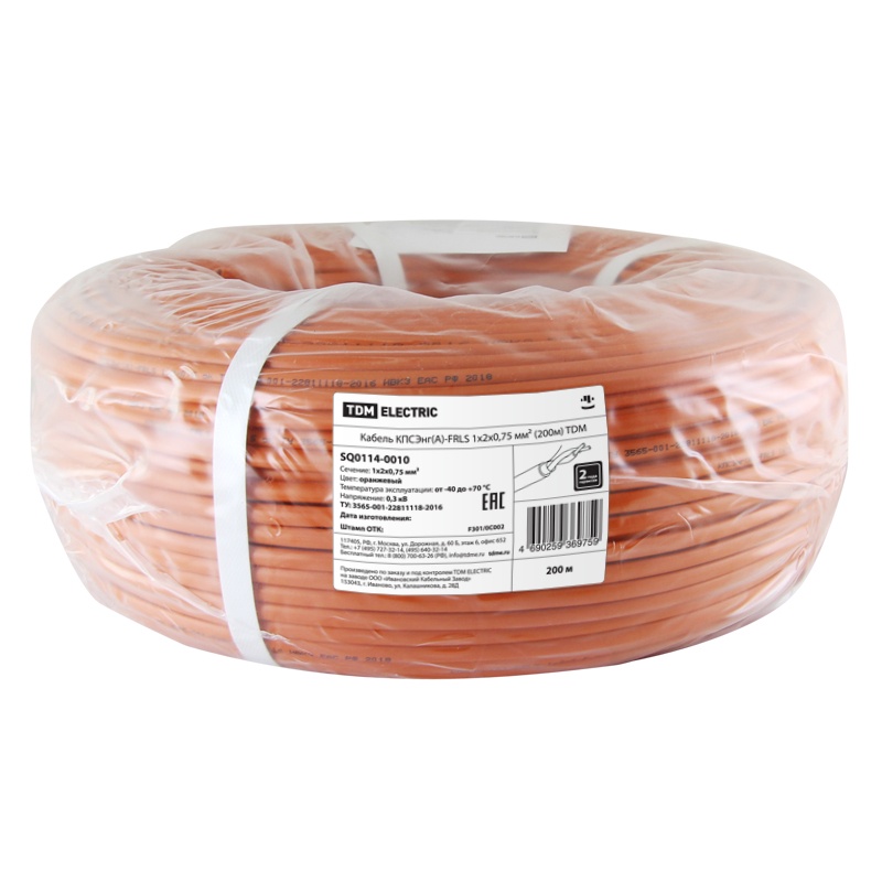 Кабель КПСЭнг(А)-FRLS 1х2х0,75 мм2, оранжевый (бухта-200 п.м.)