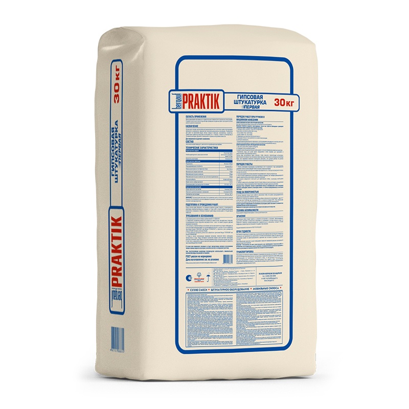 Штукатурка гипсовая Bergauf Praktik для машинного нанесения, 30 кг