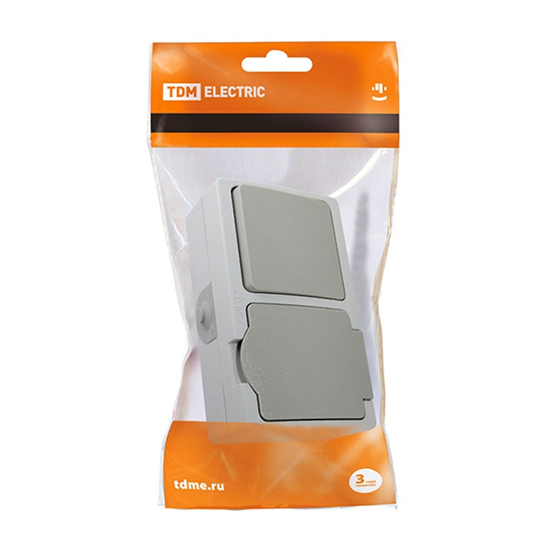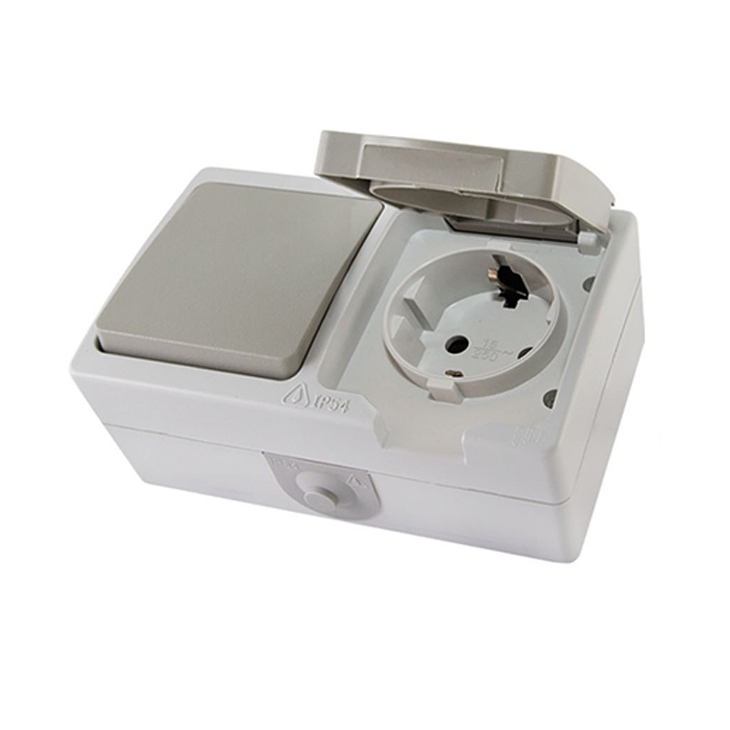 Блок БКВР о/у Вуокса SQ1803-0010, 1 клавиша + 1 гнездо с/з, з/ш и крышкой, IP54, серый