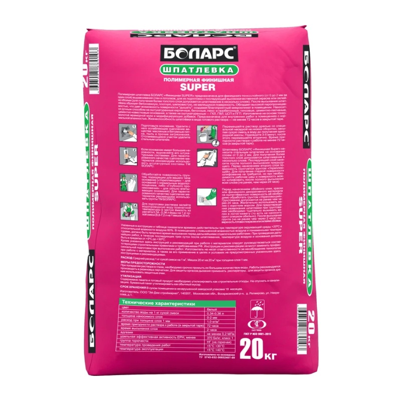 Шпаклевка финишная Боларс Супер, 20 кг