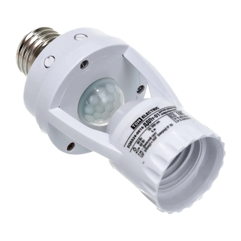 Датчик движения в патрон E27 d=6 м, 60Вт, 3-2000 Лк, 10-300с