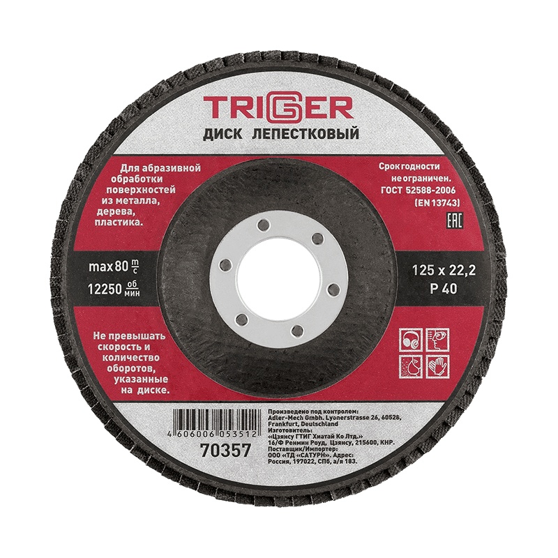 Диск лепестковый Trigger 70357 по металлу 125х22 мм P40