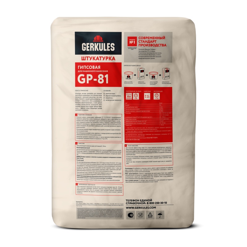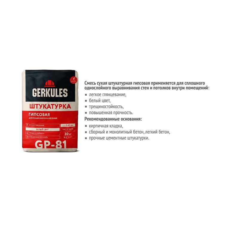 Штукатурка гипсовая Gerkules GP-81 машинного нанесения, 30 кг