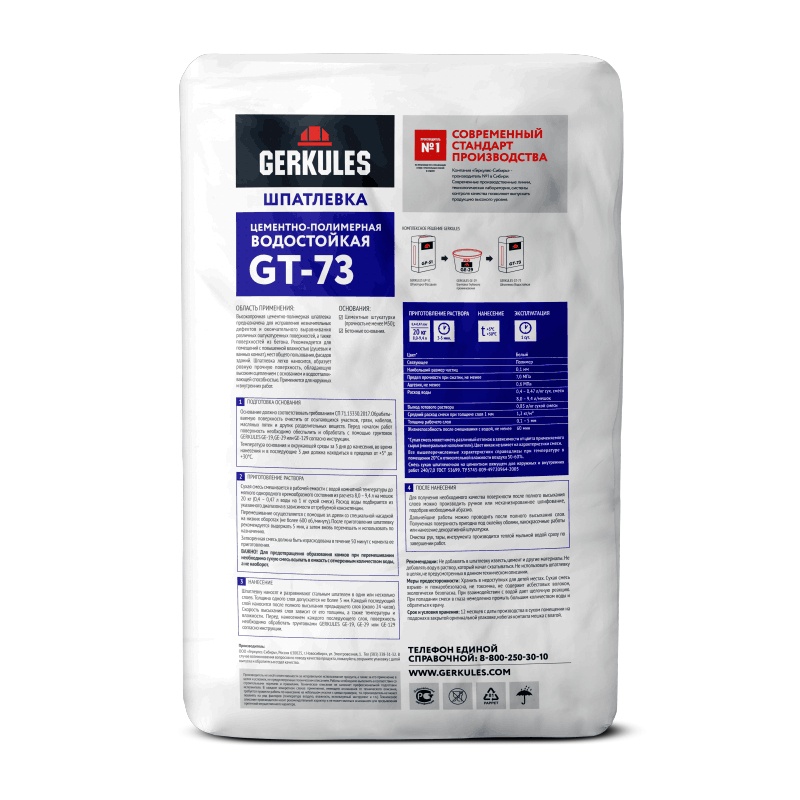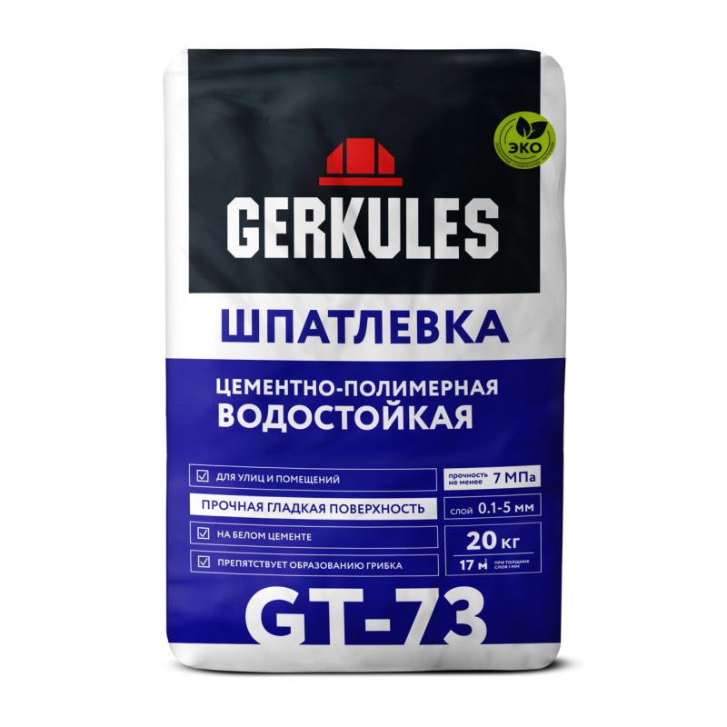 Шпаклевка цементно-полимерная водостойкая Gerkules GT-73, 20 кг