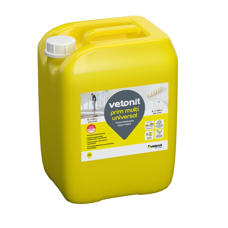 Грунтовка укрепляющая универсальная Vetonit Prim Multi для наружных и внутренних работ (5 л)