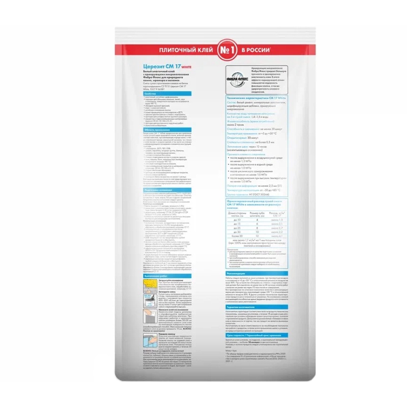 Клей для природного камня, мрамора и мозаики Церезит CM 17 White (5 кг)