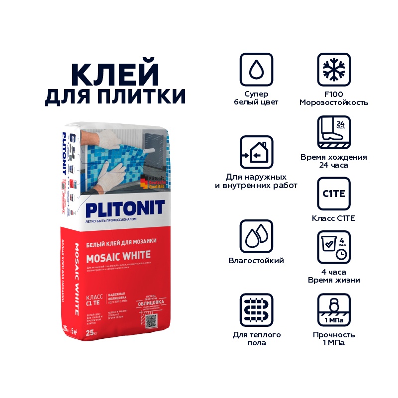Клей для мозаики Plitonit Mosaic White, белый(25 кг)
