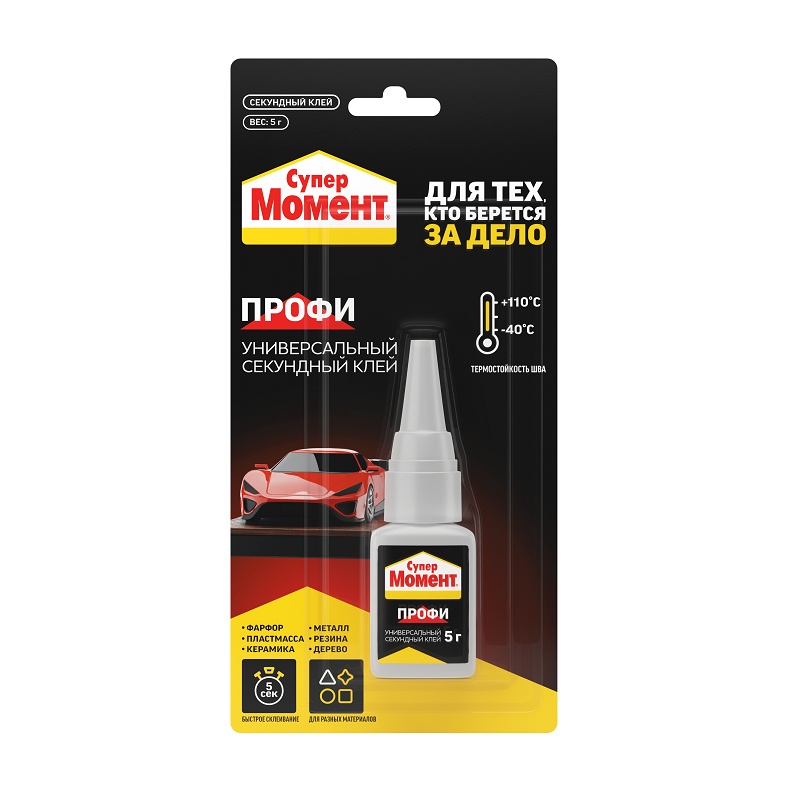 Клей секундный Супер Момент Профи, на блистер-карте в шоу-боксе (5 г)