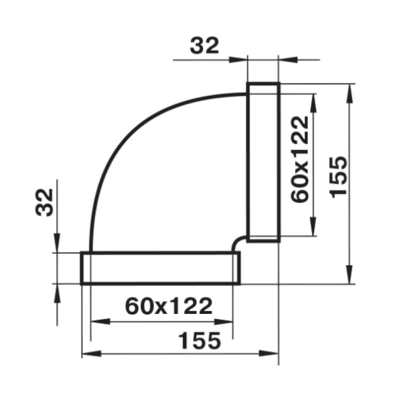 Колено горизонтальное Наш Вент 7271, 90 градусов, 120х60 мм
