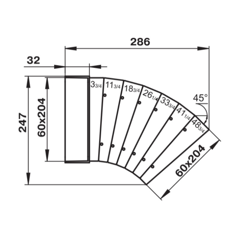 Колено горизонтальное разноугловое НашВент 82810, 60х204 мм