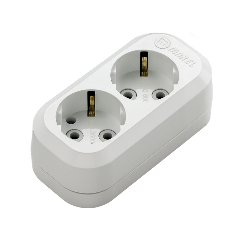 Колодка 2 гнезда Makel MGP111, 16А, 230В, с/з, белая