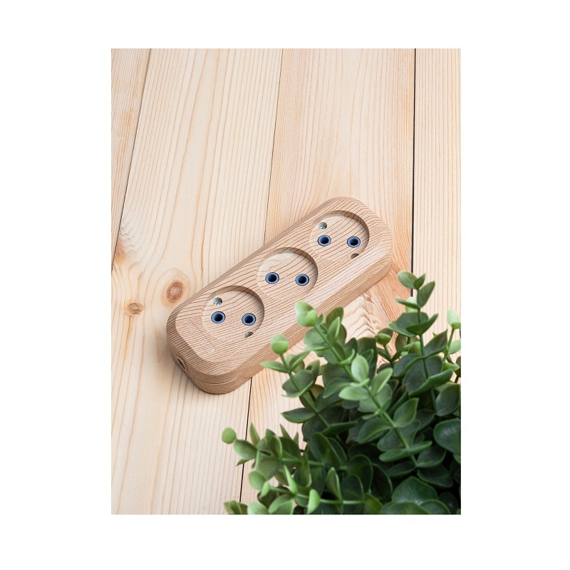 Колодка 3 гнезда, б/з, 10А, светлое дерево