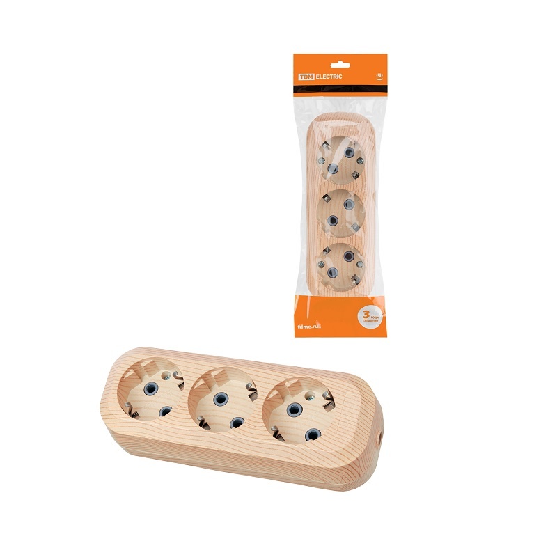 Колодка 3 гнезда, с/з, 16А, светлое дерево