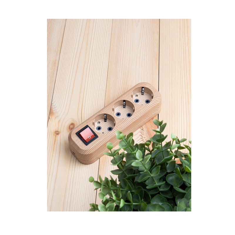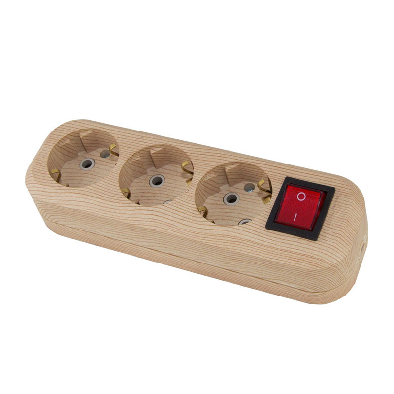 Колодка 3 гнезда, с/з и выключателем, 16А, светлое дерево