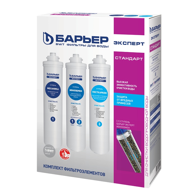 Данная комплектация включает: Барьер Эксперт Механика, Барьер Эксперт Ионообмен, Барьер Эксперт ПостКарбон.