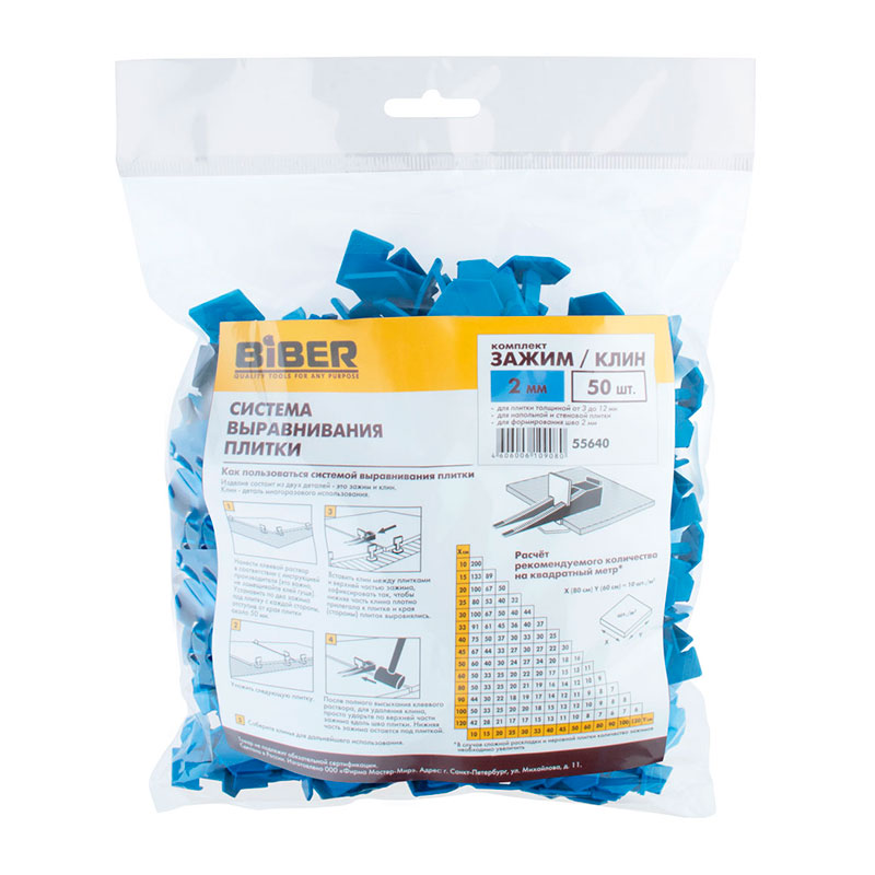 Комплект СВП Biber 55640 зажим (флажок) и клин 2 мм (по 50 шт.)