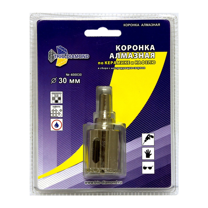 Коронка алмазная по керамике и кафелю 30 мм с центрирующим сверлом