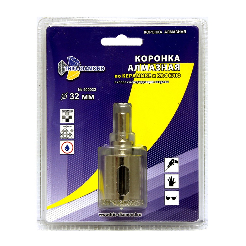 Коронка алмазная по керамике и кафелю 32 мм с центрирующим сверлом