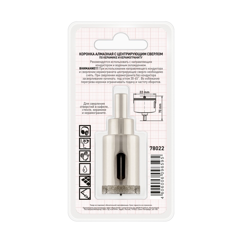 В строительном магазине Сатурн можно купить товар "Коронка алмазная Trigger 78022 22х70мм" по цене от 855 руб с доставкой за 2 часа по Тольятти или оформить самовывоз.