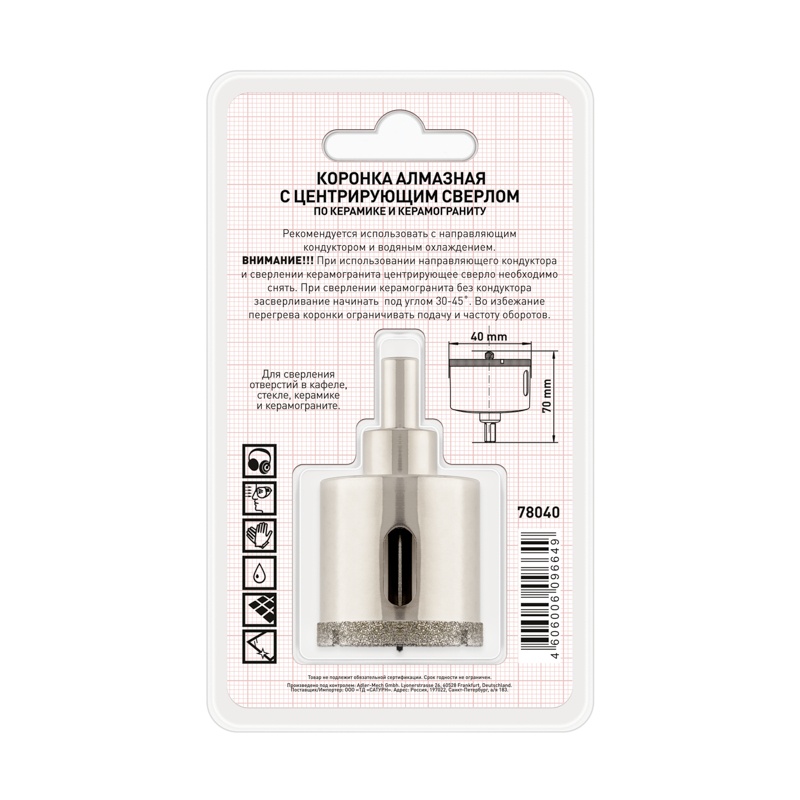 В строительном магазине Сатурн можно купить товар "Коронка алмазная Trigger 78040 40х70мм" по цене от 1391 руб с доставкой за 2 часа по Тольятти или оформить самовывоз.