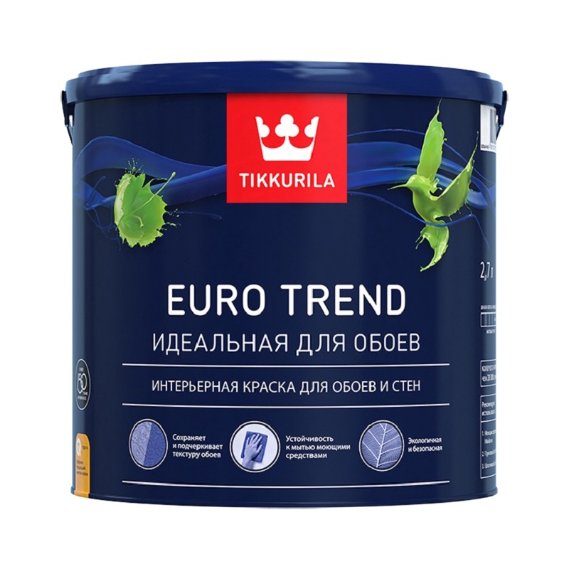 Краска для обоев и стен Tikkurila/Tikkivala Euro Trend С матовая (2,7 л)