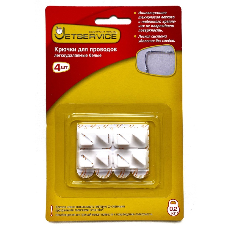 Крючок для проводов легкоудаляемый, 4 шт