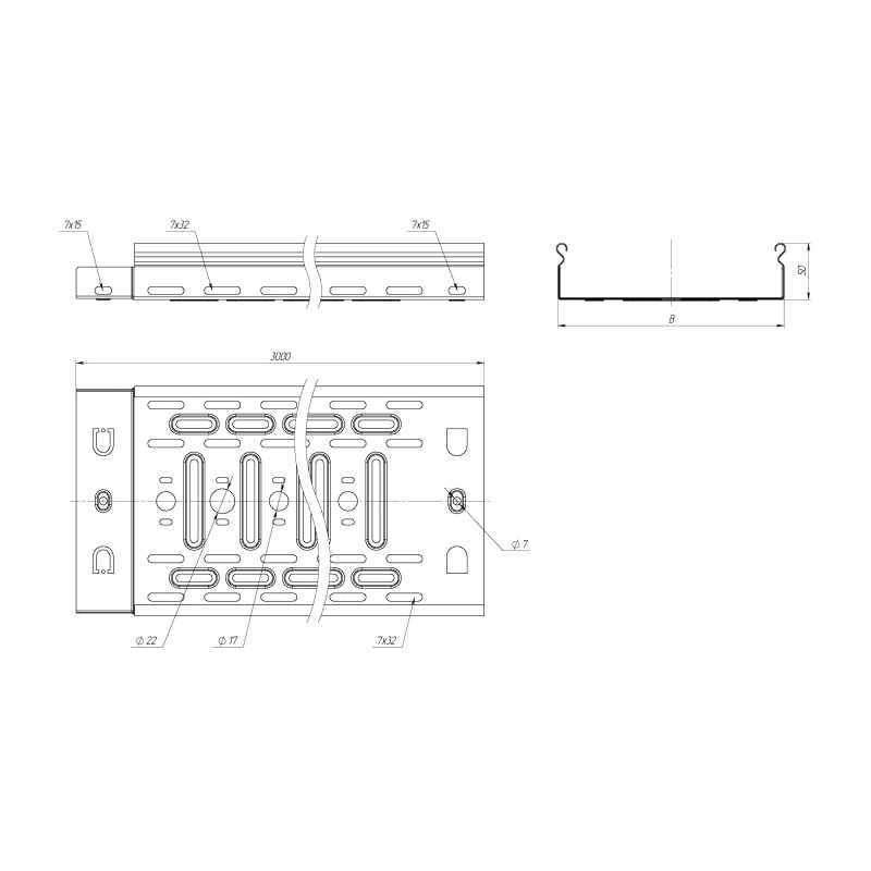 Лоток листовой перфорированный, замковый EKF 200х50х0,7 мм, L=3 м