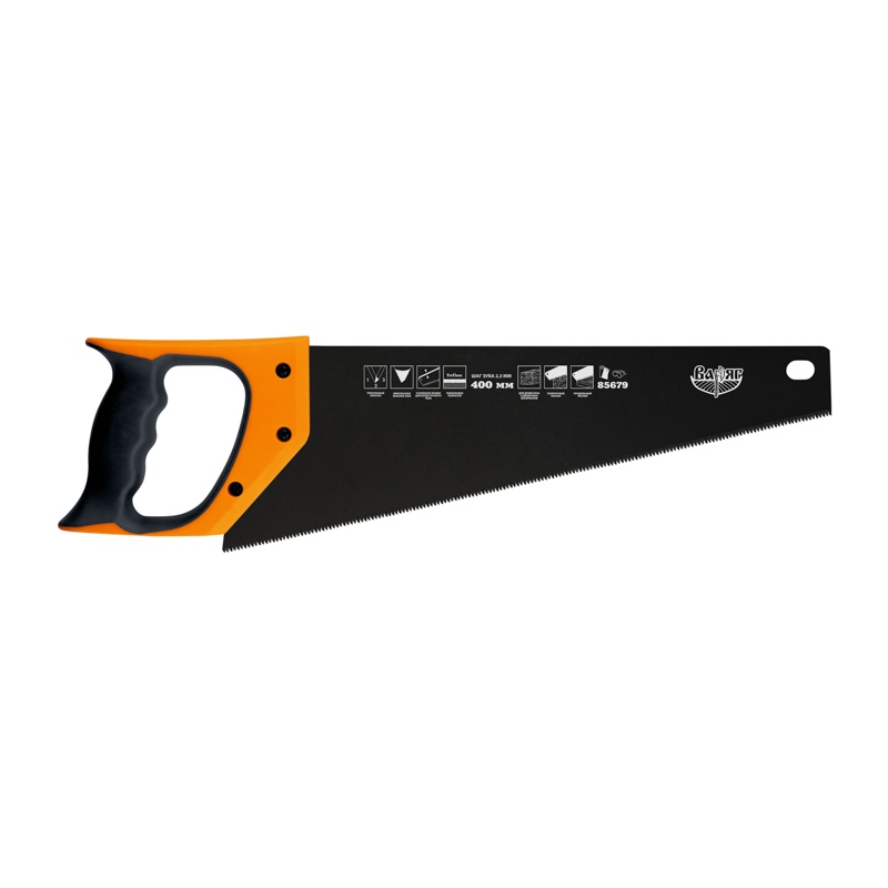 Предназначена для качественной распиловки деревянных деталей. Мелкий зуб. Инструментальная сталь У8. Трехгранная заточка. Импульсная закалка зуба. Усиленное полотно. Специальное низкофрикционное антикоррозийное покрытие. Обрезиненная противоскользящая рукоятка.