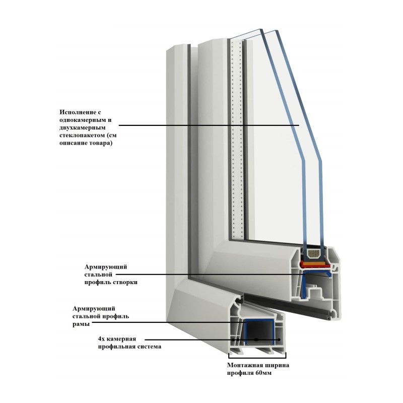 Окно металлопластиковое, поворотное, правое (600х500 мм)