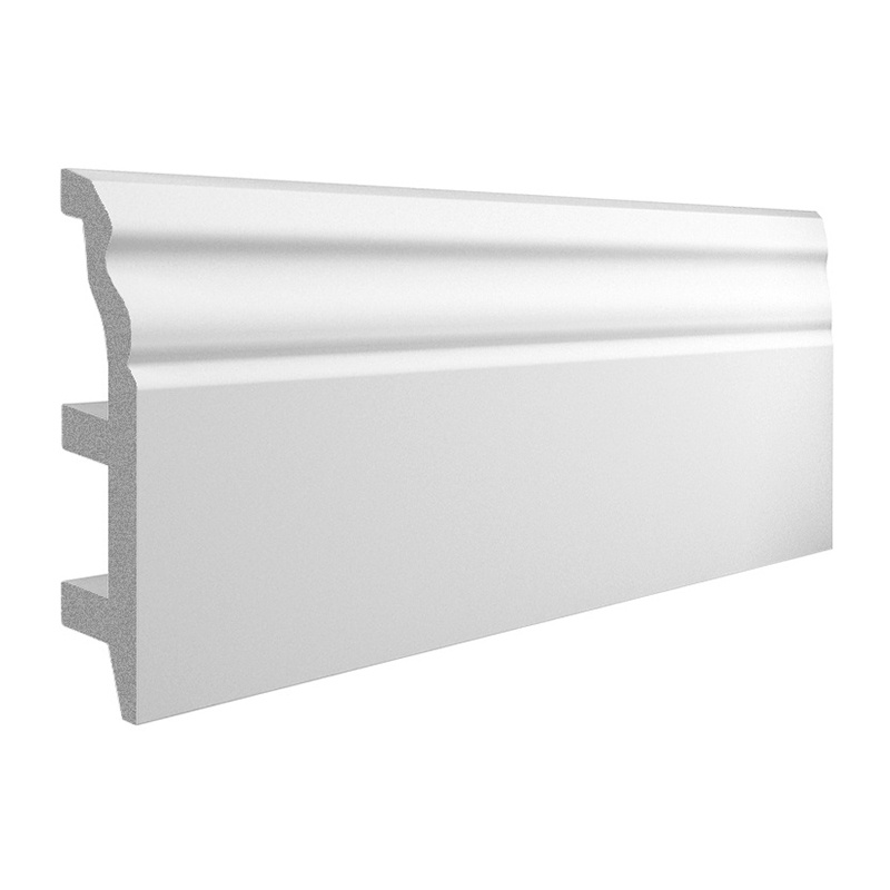 Предназначен для отделки, укладывается по периметру помещения между напольным покрытием и стеной. Дюрополимер обладает значительной ударопрочностью, твердостью, и плотностью. Обладает высокой влагостойкостью. Имеет каналы под электропроводку. Красить и перекрашивать можно не один раз.