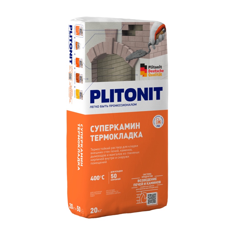 Предназначена для кладки внешних стен печей, каминов, дымоходов и мангалов из глиняных кирпичей. Можно использовать внутри и снаружи помещения на глиняный кирпич. Температуростойкость: 400 градусов. Начало эксплуатации печи возможно через 10 суток.