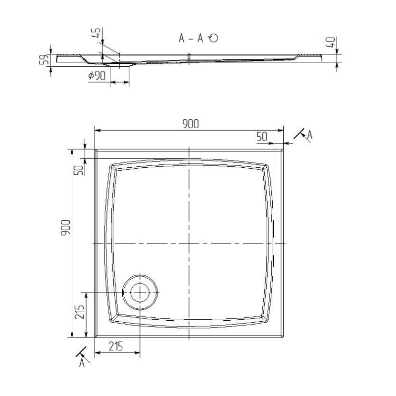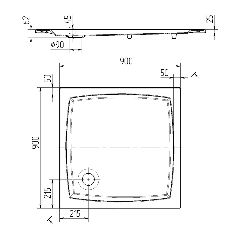 • Размеры (ДхШхВ): 90 х 90 х 16,9 см