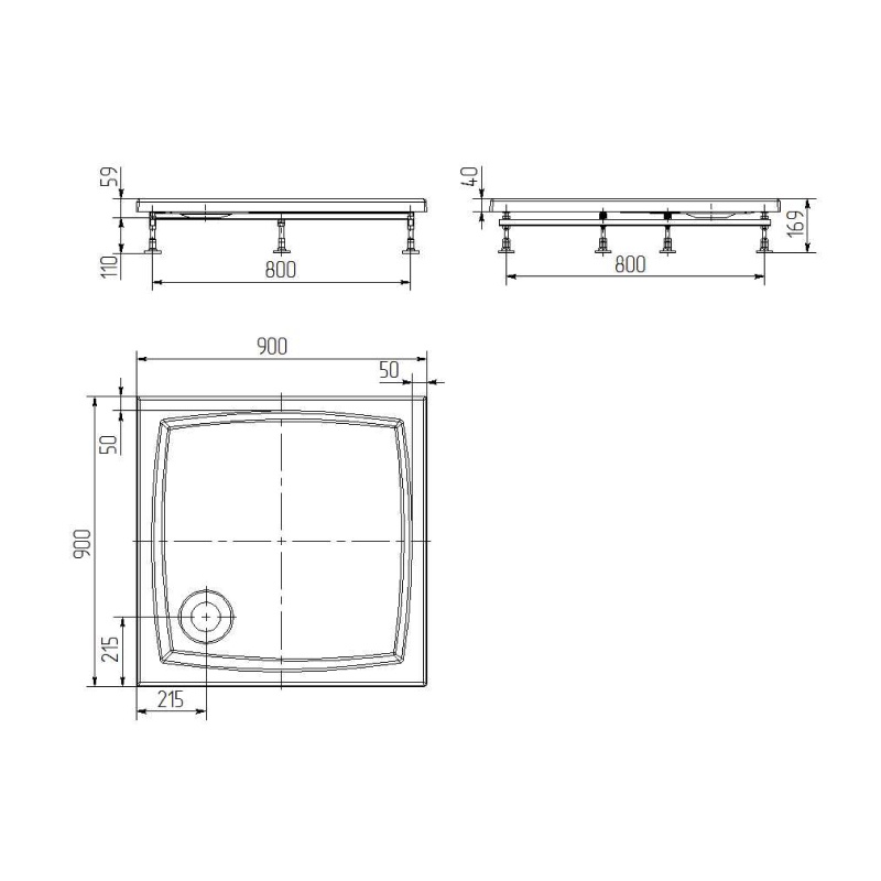 Поддон Универсал Лина, акриловый, 900х900х169 мм