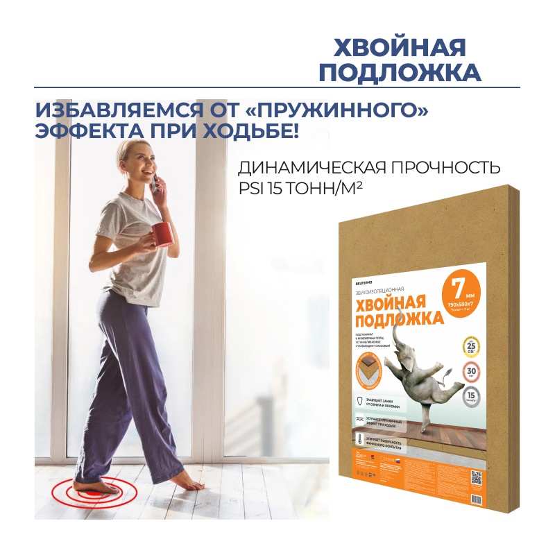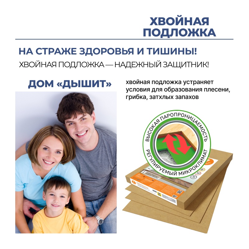 Предназначена для звукоизоляции, подходит под ламинат, LVT, инженерные полы, устанавливаемые "плавающим" способом. Устраняет условия для образования плесени, грибка и затхлых запахов. Выравнивает неровности чернового пола до 2 мм. Утепляет поверхность финишного покрытия. Защищает замки от скрипа и поломки – продлевает срок службы финишного пола. Используют в утеплении полов и перекрытий цокольных этажей. Устраняет неприятный пружинный «плавающий» эффект при ходьбе. В конструкциях полов устраняет до 70% шумов. Улучшает акустику помещений, устраняет эффект эха и звук шагов, защищает помещения от ударного и акустического шума. При монтаже между двумя листами гипсокартона создает значительный шумоизоляционный эффект конструкции стен и потолков.