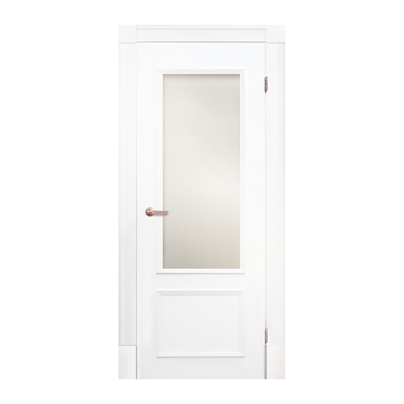 Предназначено для установки в межкомнатный дверной блок. Дверное полотно с притвором остекленное, покрытое краской УФ-отверждения. Каркас - массив сосны и(или) МДФ. Сотовое картонное заполнение. Поверхность - плита ХДФ. Фигурная накладка выполнена из массива сосны мебельной влажности или МДФ.