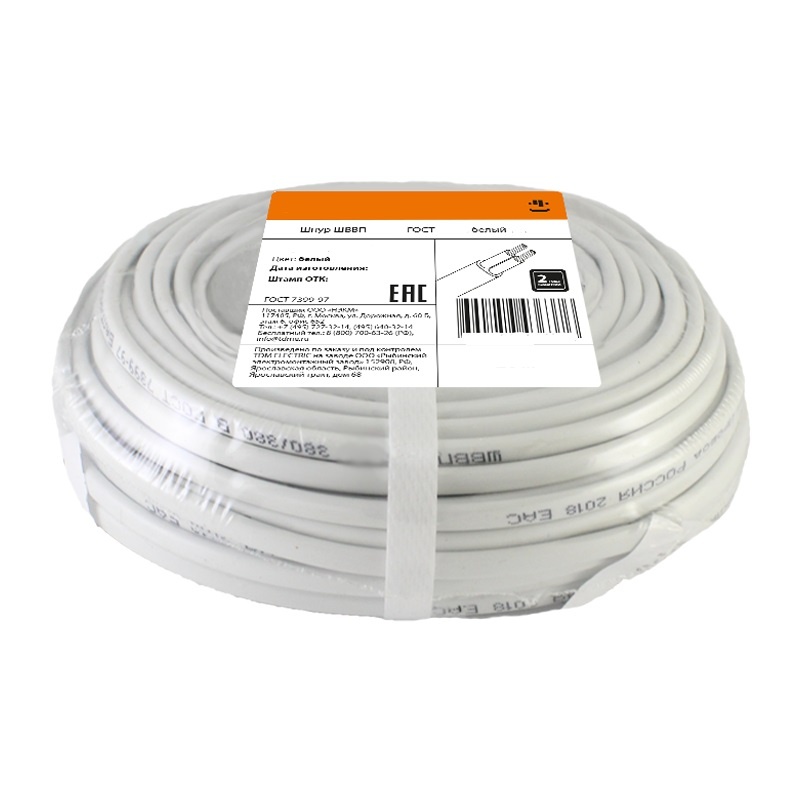 Провод ШВВП 2х0,5 мм², белый (бухта-10 п.м.) ГОСТ 7399-97