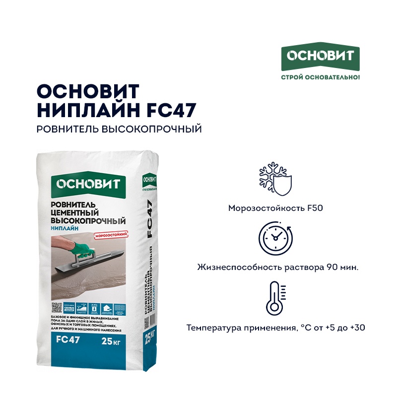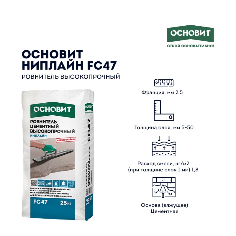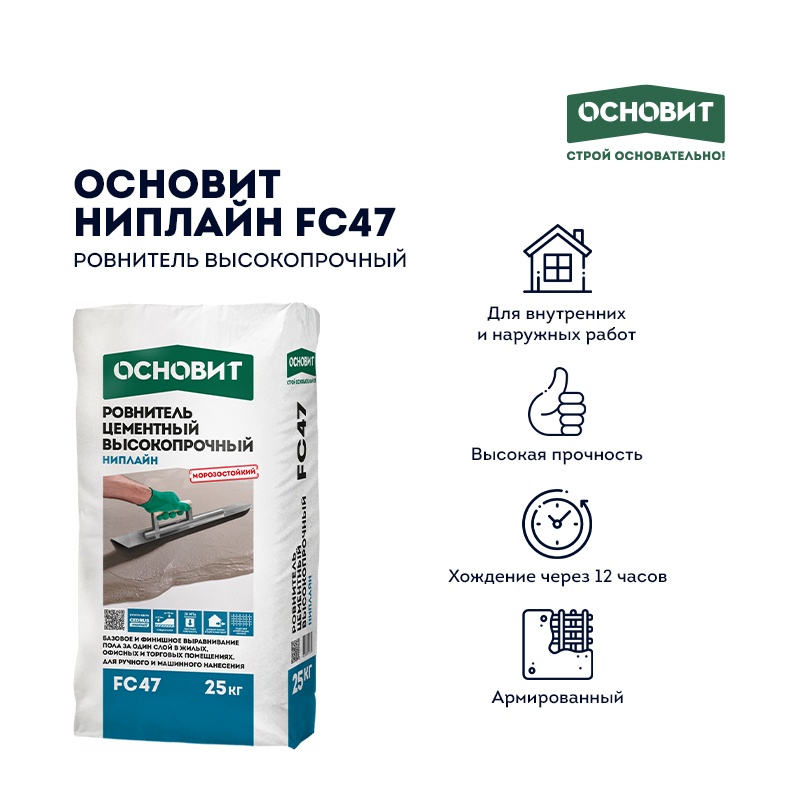 Ровнитель для пола Основит Ниплайн FC47 высокопрочный, 25 кг