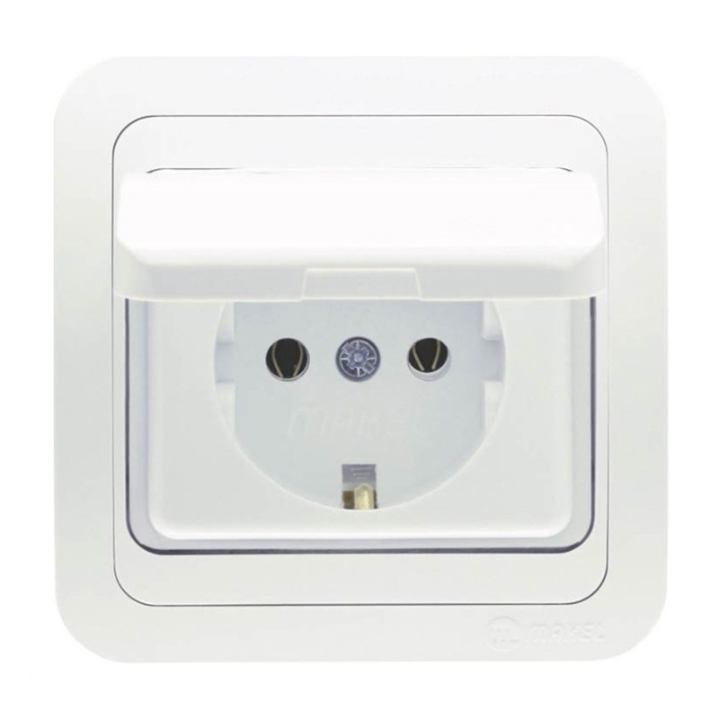Розетка с/у Mimoza 12029, 1 гнездо, c/з и крышкой, белая