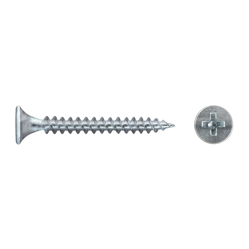 Предназначен для крепления листов гипсокартона к металлическому профилю без предварительного сверления. Имеет потайную рожковую головку, крестообразный шлиц Phillips №2, острый наконечник, частую двухзаходную резьбу.