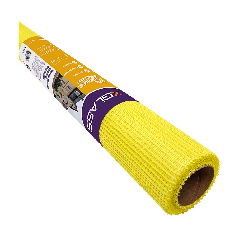Сетка стеклотканевая фасадная X-Glass 5х5 мм, 1х20 м+/-10%, 145 гр/м2, желтая