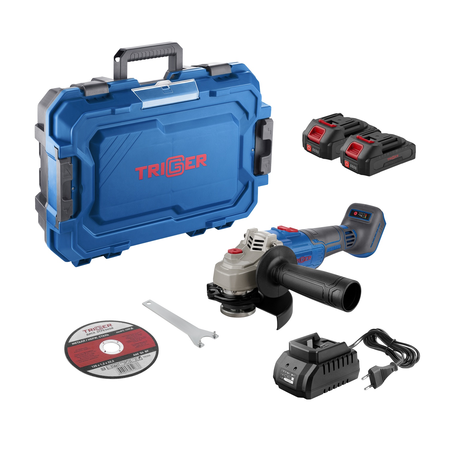 Шлифмашина угловая УШМ аккумуляторная Trigger 20123 ЕАП 18В, Li-ion d=125мм, 2х4Ач, кейс, бесщеточная
