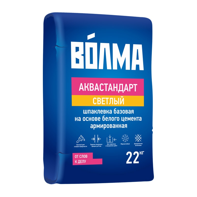 Шпаклевка базовая Волма Аквастандарт на основе белого цемента, 22 кг