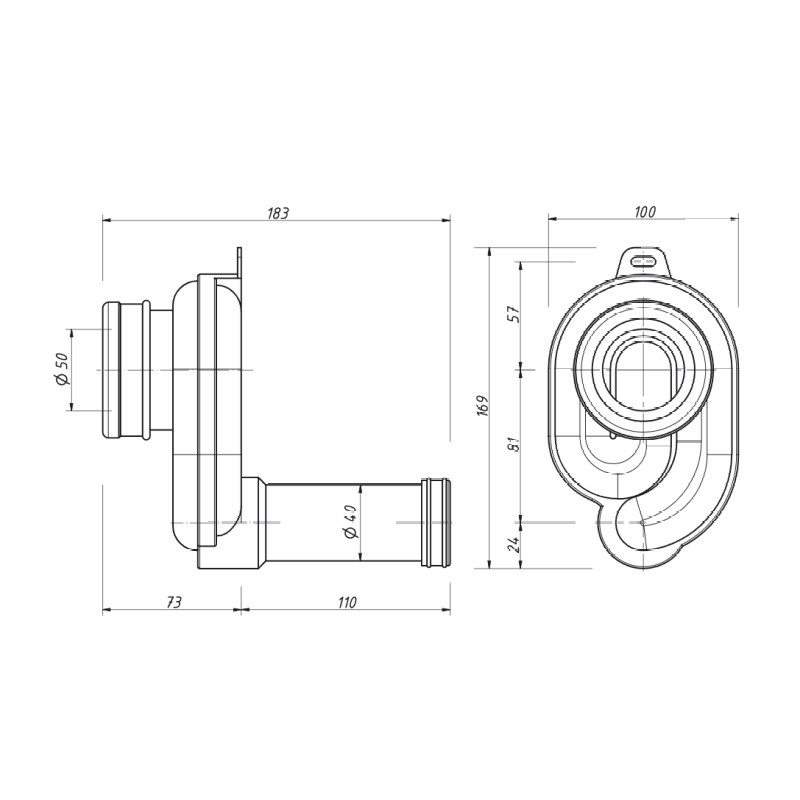 Сифон для писсуара Orio РВ-41009, 50х40мм, встраиваемый