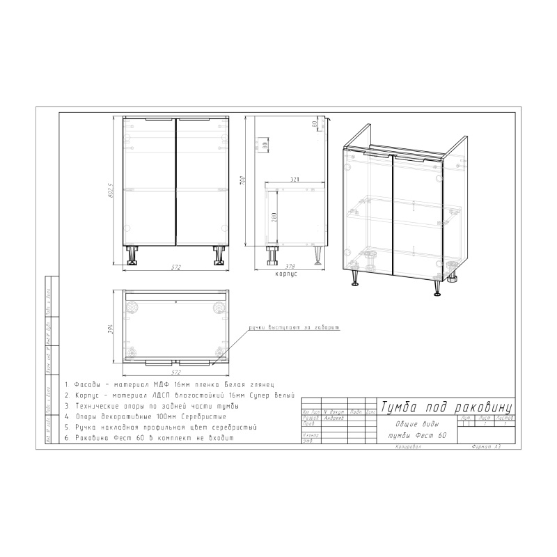 Тумба для ванной комнаты SKS Фест 60, 572х699х395 мм