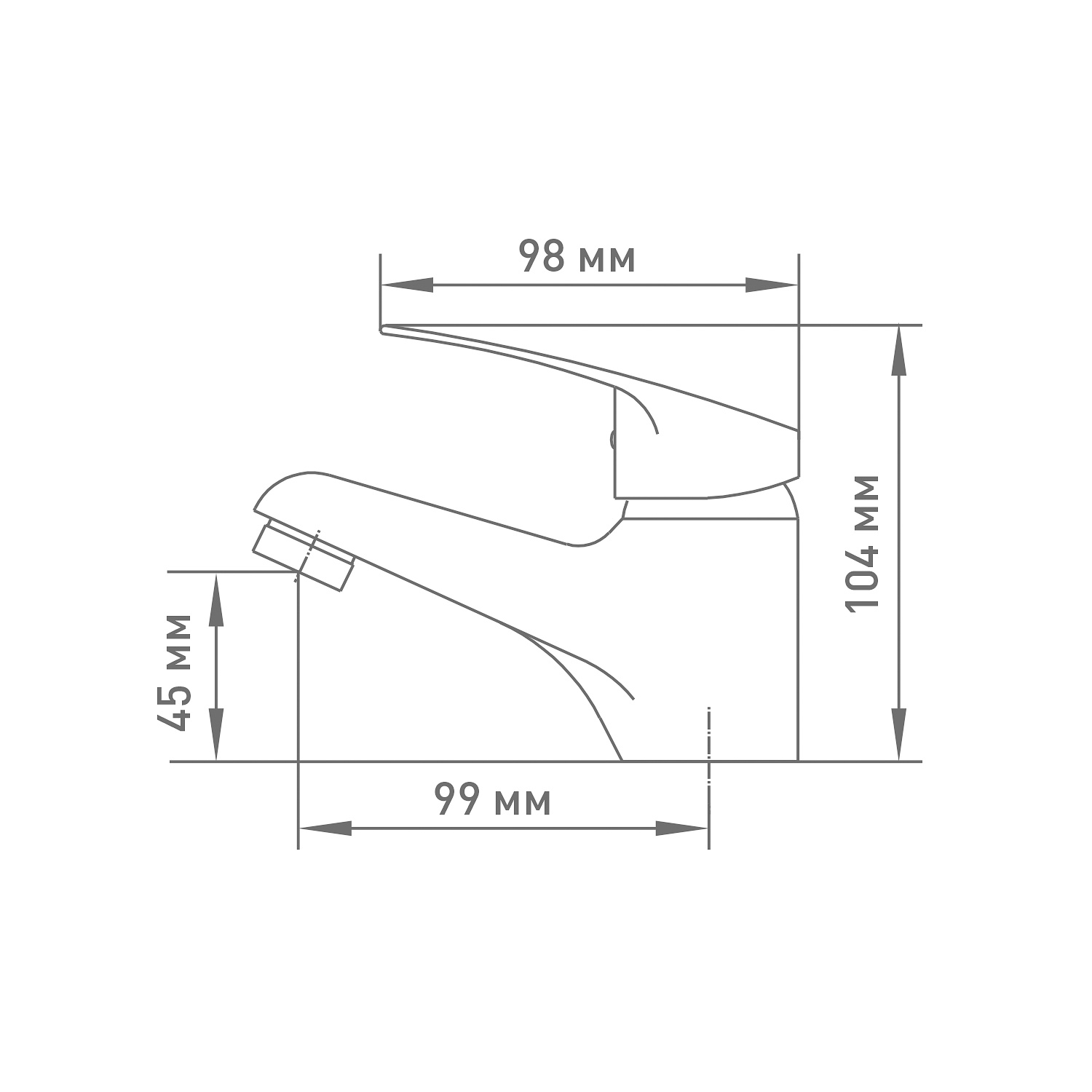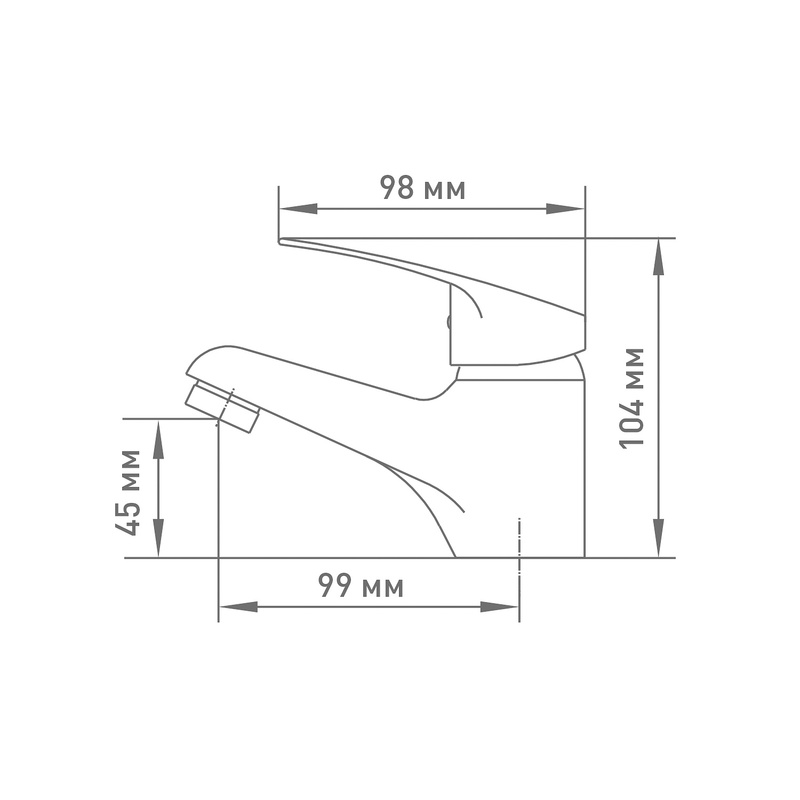 • Излив: Неповоротный, высота 4,5 см, расстояние до точки падения воды 9,9 см