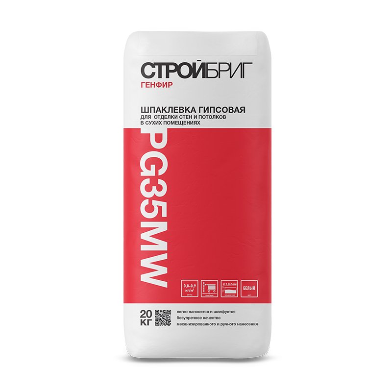 Шпаклевка гипсовая Стройбриг Генфир PG35 MW белая, 20 кг