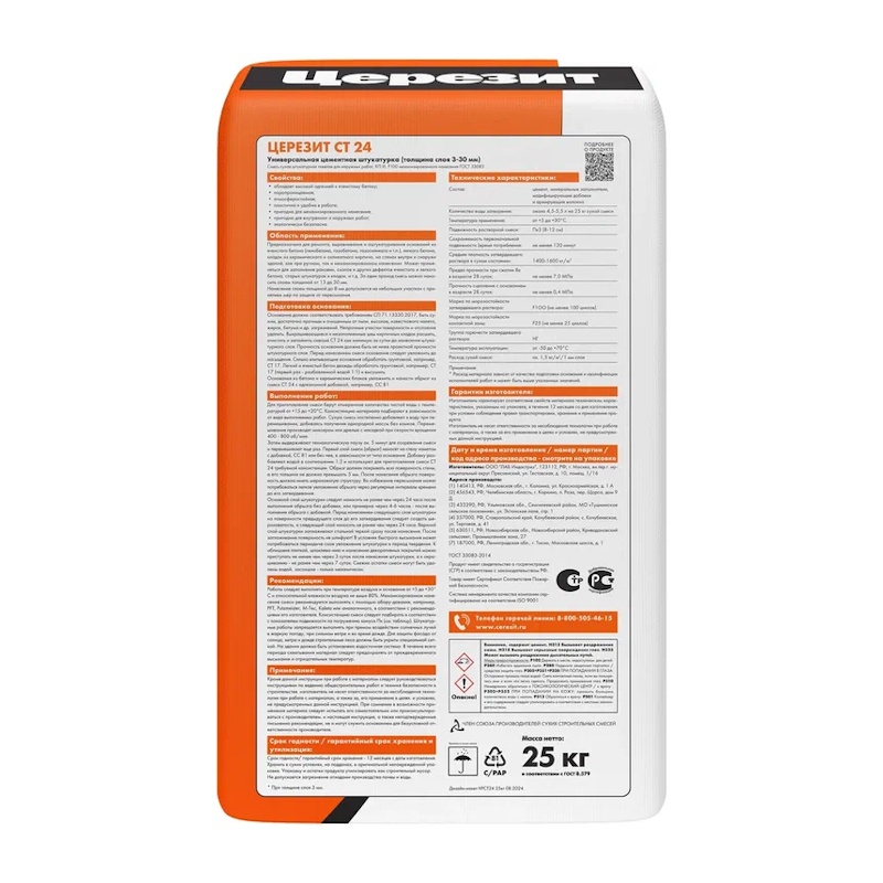 Штукатурка Церезит CT 24 для ячеистого бетона, 25 кг