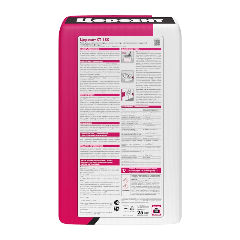 Клей Церезит СТ 180 для минераловатных плит, 25 кг