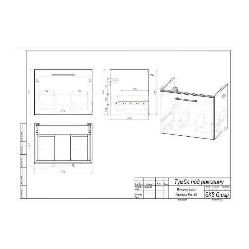 Тумба для ванной комнаты SKS Фест 60 572х445х392 мм